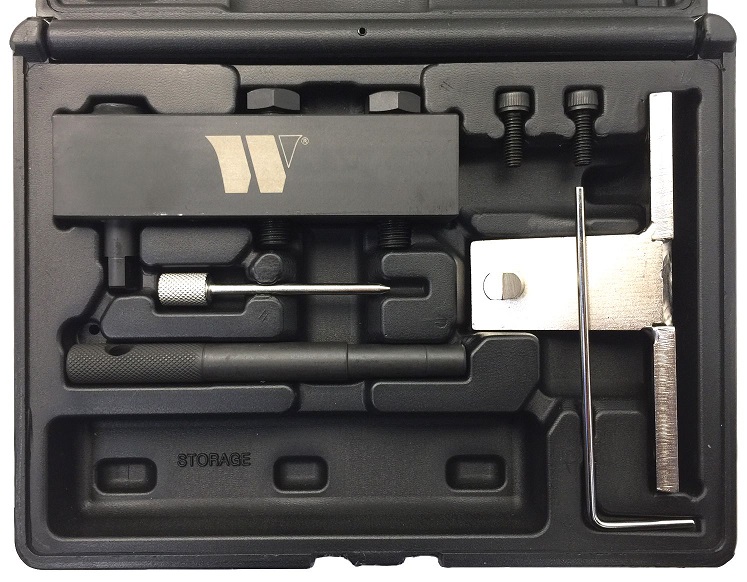 Součástí sady je i držák ozubeného kola vačkové hřídele, který je vyžadován při demontáži vaček aj.