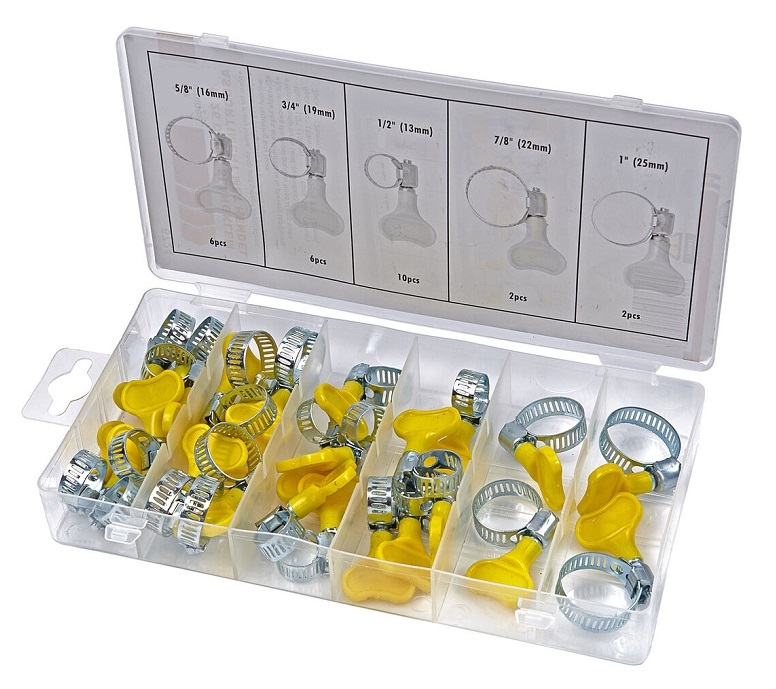 - Praktická sada hadicových svorek s křídlovou maticí pro snadné utažení.