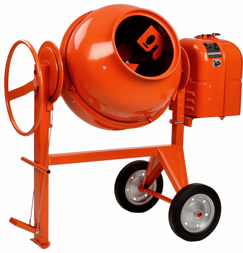 Stavební míchačka s objemem 230 l, napětí 230 V, robustní provedení, jednoduché ovládání, nožní brzda.