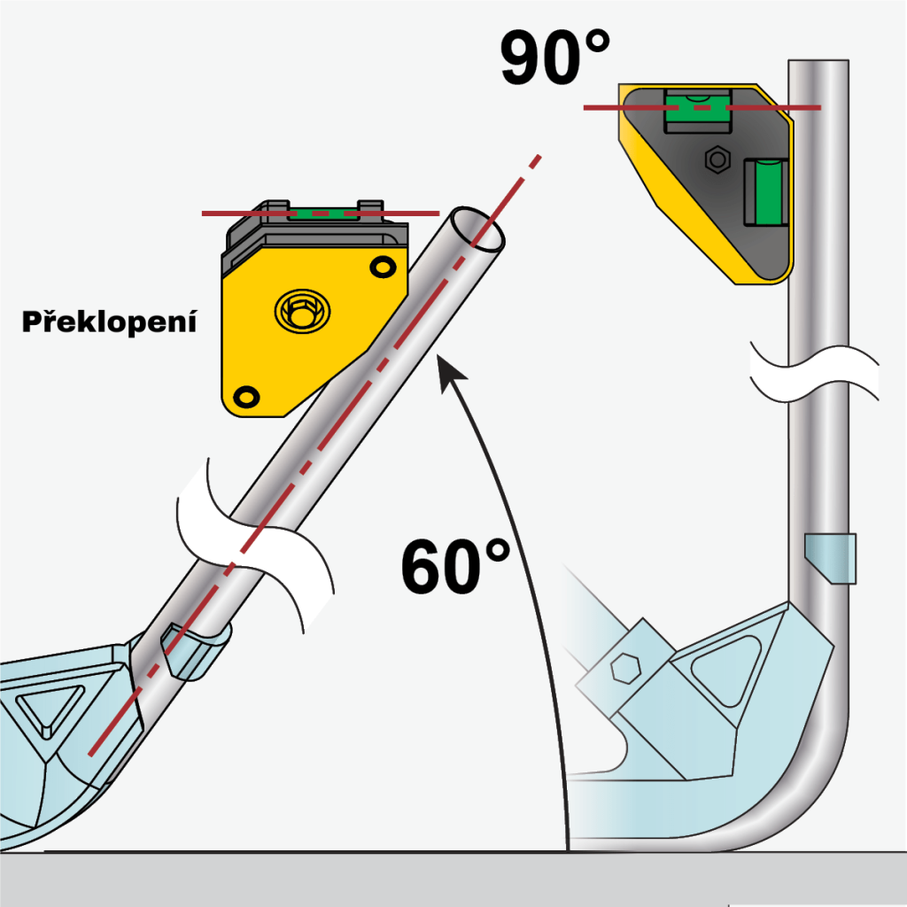 - Dvě dobře čitelné VELKÉ libely pro kontrolu úhlů 30° / 60°, 45° a 90°.